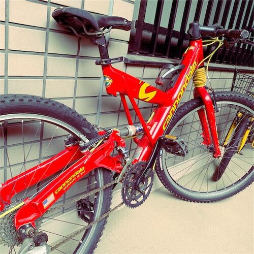 久しぶりの自転車ネタ。 憧れのフレーム、Cannondale Super V800。偶然個人売買で譲っていただきました。ワンオーナーでずーっと室内保管されてたっぽい個体で、傷/サビは年式相応(2000年)ありますが、可動部分に固着もなくワイヤーも交換済み。大事にされて…
